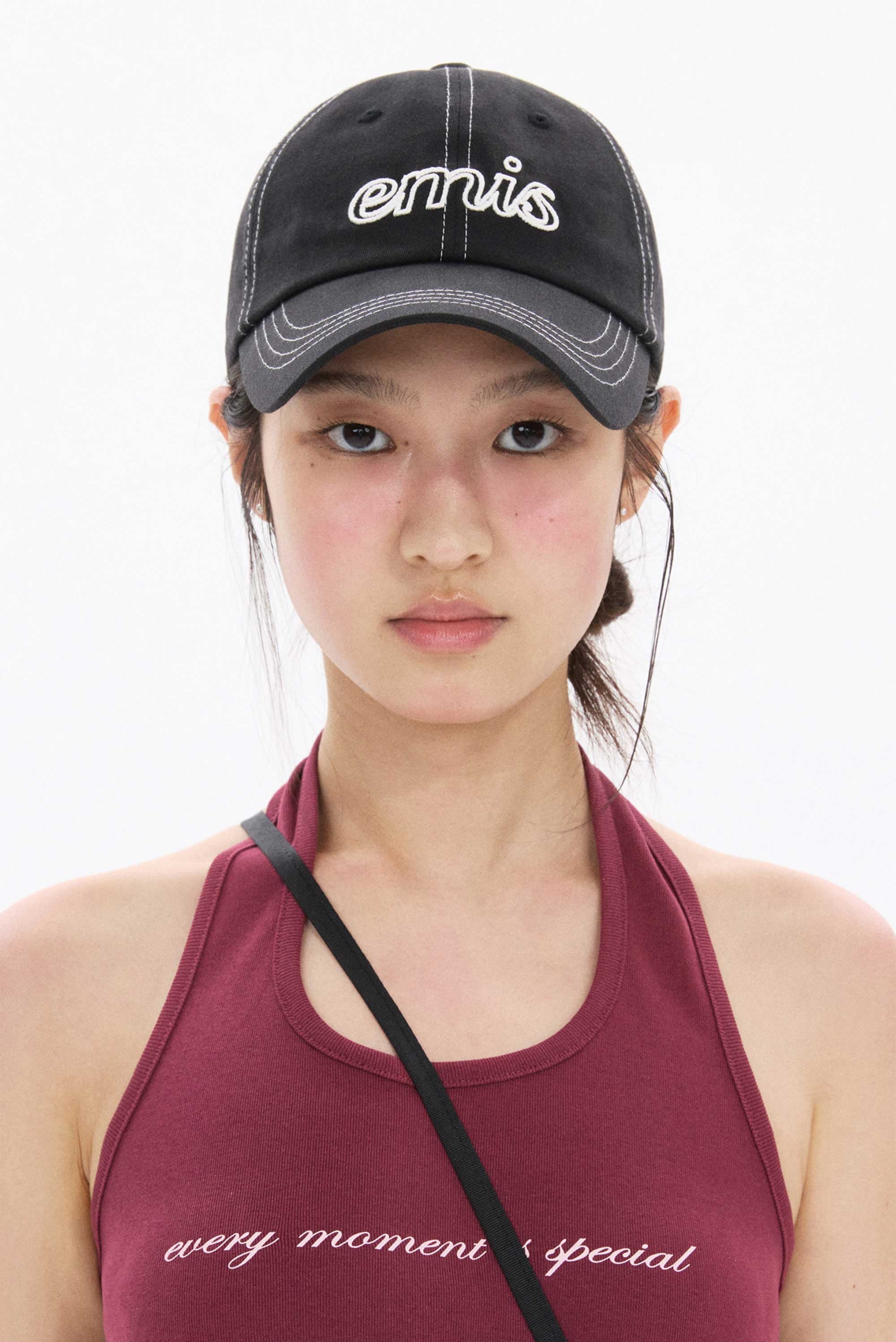 LETTERING LOGO WHITE STITCH BALL 以白色車縫線搭配正面輪廓Logo刺繡設計,展現簡約細節感。